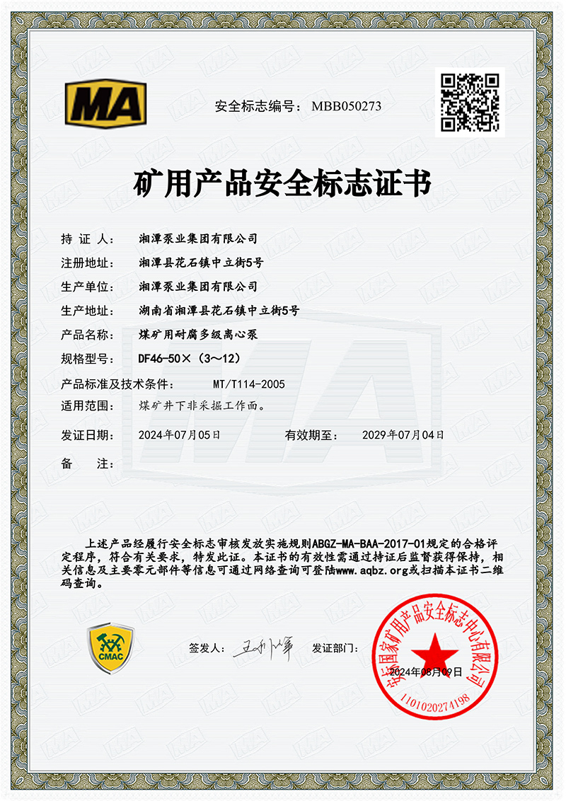 煤礦用耐腐多級離心泵 DF46-50X(3-12)