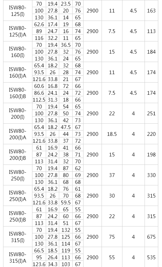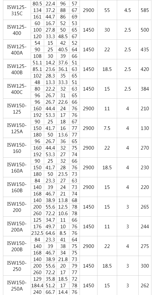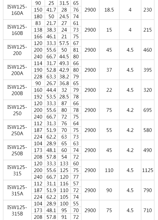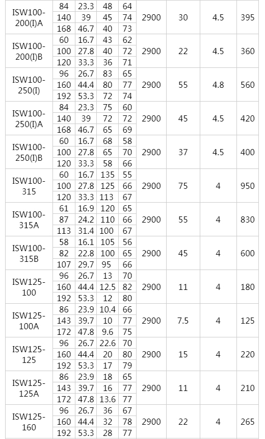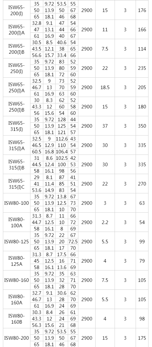 該泵采用國內(nèi)先進(jìn)水力模型優(yōu)化設(shè)計(jì)而成。同時(shí)根據(jù)使用溫度、介質(zhì)等不同在ISW型基礎(chǔ)上派生出熱水泵、高溫泵、化工泵、油泵等,是目前國家標(biāo)準(zhǔn)定型推廣產(chǎn)品。