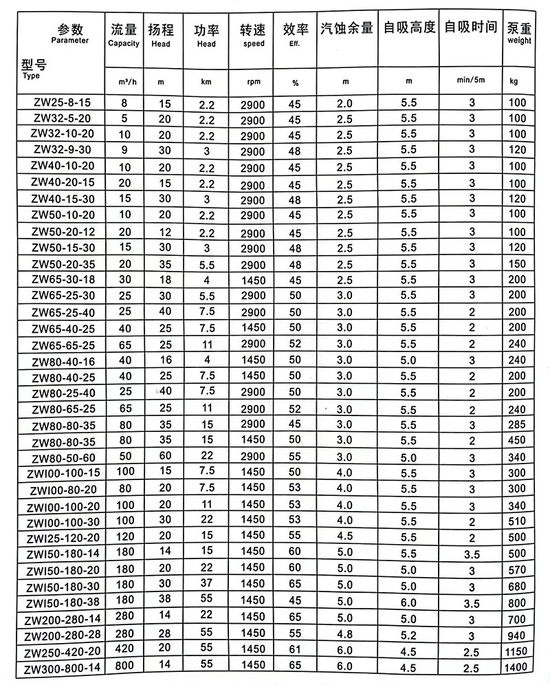 該型泵水力性能先進、高效。結構多樣,安裝方式多樣,簡化泵站,節(jié)約投資。ZW型無堵塞自吸泵集自吸和無堵塞排污于一身,即可象一般清水自吸泵那樣不需要底閥,又可抽吸含有大顆粒固體,長纖維的污物:沉淀物廢礦質雜質、糞便處理及一切工程污水物,完全減輕工人的勞動強度,而且使用移動,安裝方便,極少維修、性能穩(wěn)定。